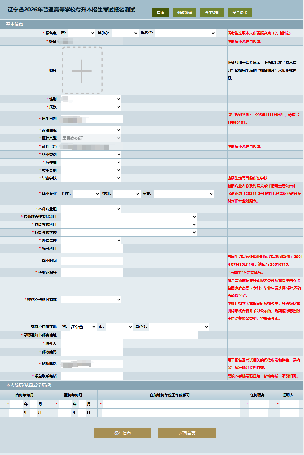 考生须根据报名系统提示及要求提交本人照片。该照片将用于专升本报名、考试、录取及入学后学籍注册,审核通过后无法修改。请考生务必严肃对待,按要求上传本人近期免冠照片,若因考生美颜、修图、翻拍或“海马体”照片等造成影响考试入场、录取后无法注册学籍、学信网对比不通过等情况,后果由考生本人承担。