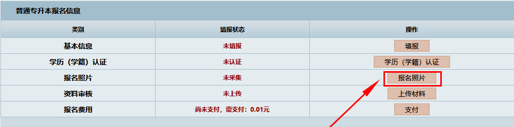 完成学历(学籍)认证后,回到报名系统页面,进行报名照片的上传。